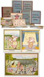 4. 23 original illustrations, gouache on stiff paper, 6 x 9 inches, [Mount Vernon], 1931-2, all but one depicting scenes with Pixey characters, holograph descriptions on verso, with dedication inscription to Sally and Nina, light edgewear, else excellent.